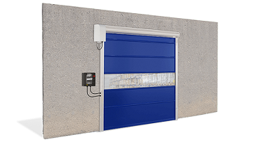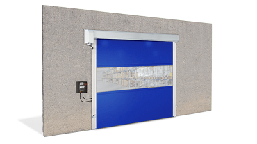 Porta rápida preparada para uso intensivo, que se autorrepara quando a lona se desloca das guias. Isto é possível através dos perfis desenvolvidos e testados para que funcione com a máxima segurança.